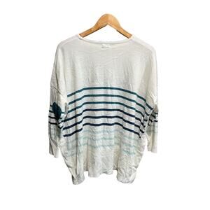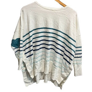 Mersea White & Blue Striped Long Sleeve Heart Elbow Women's Sweater Size OS