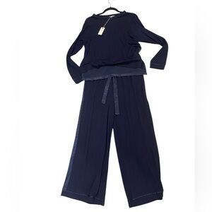 Mersea satin and knit navy blue pajama set moon dancer new with tags