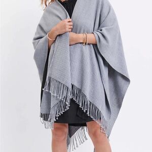 Mersea women’s one size gray classic travel wrap fringed textured