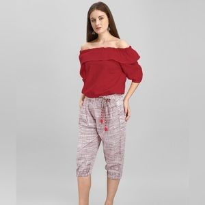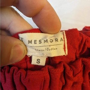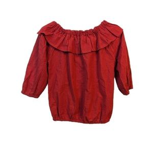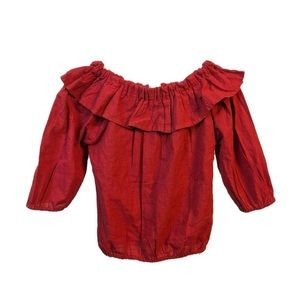 Mersmora Off The Shoulder Red Linen Blend Lagenlook Ruffled Blouse- Size Small