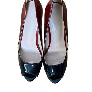 Merumote NWOT Aahe Stiletto Heel Platform Peep Toe Dress Pumps Red Black Sz 10.5