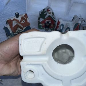 Mervyns 1994 Village Square 5 Piece Miniature House Set Vintage Christmas
