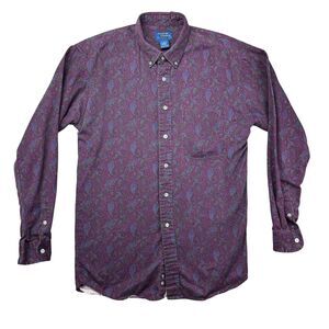 Mervyns Cambridge Classic Shirt Men's Large Purple Paisley Long Sleeve Button Up