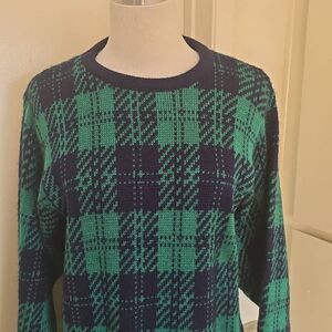 Mervyn's Junior Connection Vintage Blue/Grn Plaid Sweater Dress, EUC, round neck, set in square sleeve. Worn once, Sz. M