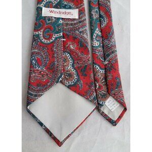 Mervyns Windridge 100% Polyester Tie Paisley Green Red Christmas 60"