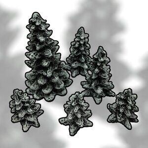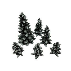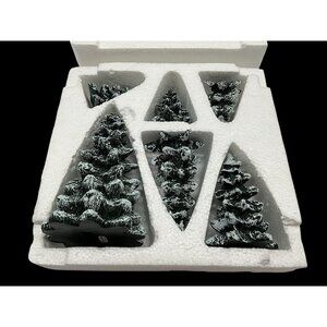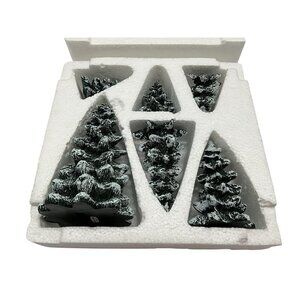 Meryvns Vintage 1990 Cold Cast Christmas Trees Snow Village Set of 6 Holiday