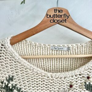 Mes Demoiselles Chunky Knit Floral Print Wool Motif Sweater Size L