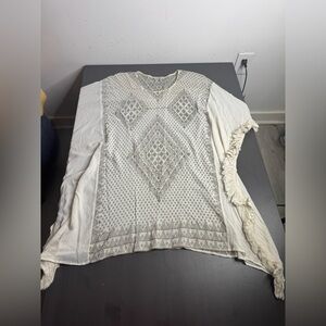 Mes Demoiselles Cotton Open Knit Crochet Tunic Coverup Top O/S