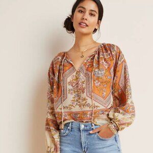 Mes Demoiselles Paris Boho Sheer Floral Peasant Blouse โ Size M (FR 40)