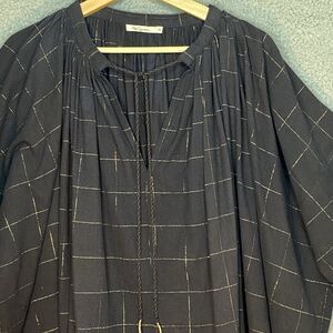 Mes Demoiselles Women's Black Metallic Gold Embroidered Blouse One Size Fits All