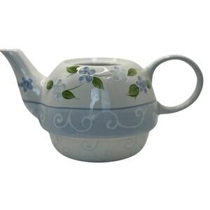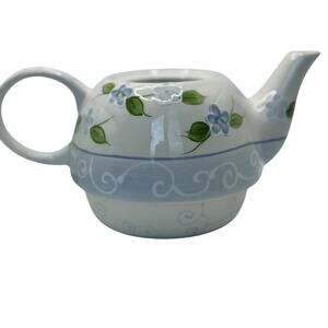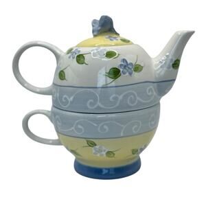 Mesa Intl Blue Yellow floral nesting teapots w/ cup and lid hand painted