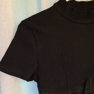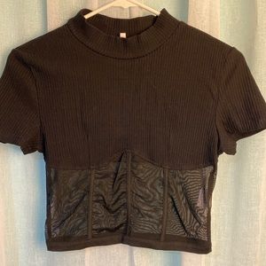 Black ribbed mesh crop top with short turtle neck, has an under boob moment when worn, brand new but no tags