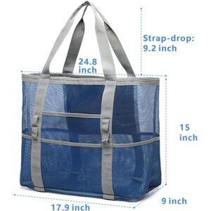*Extra Large Storage Space: The 16.5"L x 15"H x 8.5"W mesh beach bag is big enough to carry 4-6 beach towels, water bottles, sunblock, shoes, sunglasses and all you needs; Keeping items in where you want, and standing upright in place