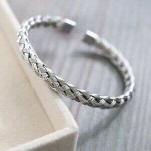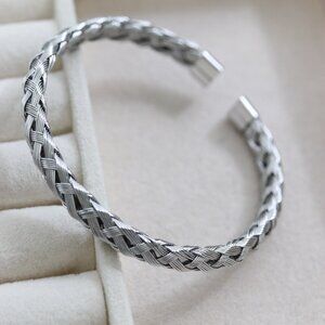 Mesh Braid Style Cuff Bangle Bracelet Silver Stainless Steel High Quality