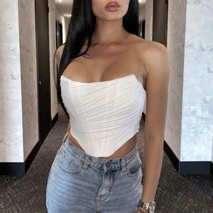 #CorsetTop #BustierTop #WhiteCorset #MeshTop #RuchedTop #DateNightOutfit #Clubwear #TrendyTops #StreetStyle #SexyTops