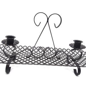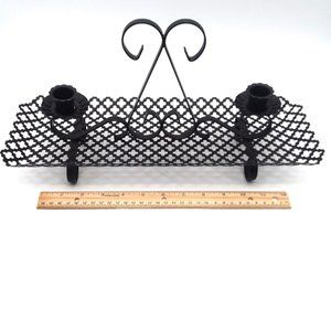 Mesh Candle Holder Centerpiece VTG Black Metal Candleabra HOMCO Votive Holder