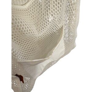 This mesh and canvas tote bag offers a stylish solution for carrying essentials. Its breathable mesh design ensures easy visibility and access to contents, while the front pocket provides additional storage. Ideal for casual outings or trips to the market, it combines functionality with a minimalist aesthetic.