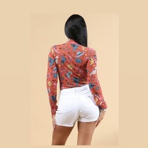 Mesh, Colorful Multi-Boots Mock Neck Bodysuit Large
