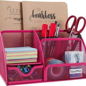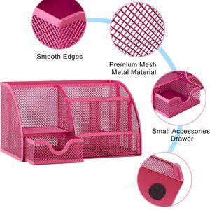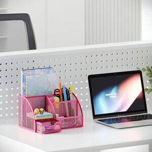 Mesh Desk Organizer for Women with Drawer - Multi-Functional Office & Makeup Sto