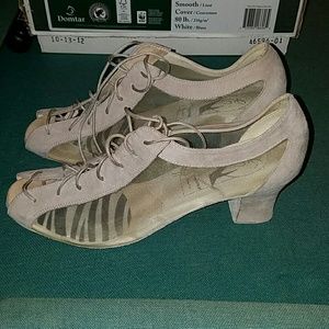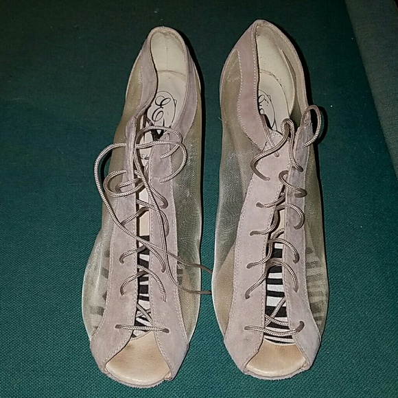A sexy shoe that shows off your feel while covering them. The color is a darker cream color, almost nude color.