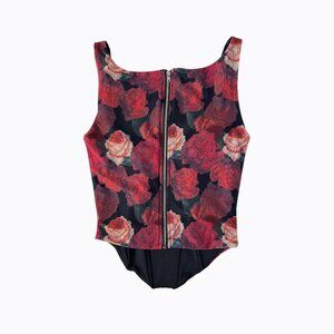 Mesh Floral Rose Corset Crop Top Sm Black Red Coquette Whimsigoth Y2K 90s Grunge