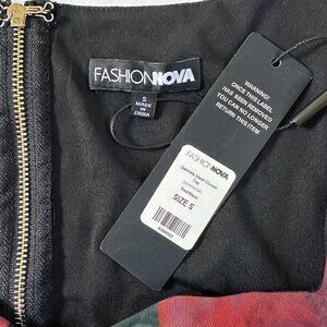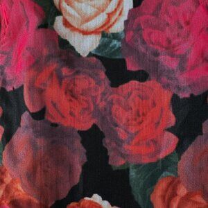 Black with red and hot pink floral pattern