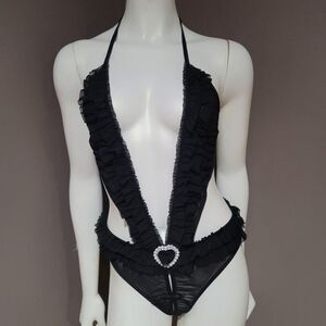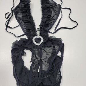 Mesh Heart Ring Linked Teddy Bodysuit Lingerie