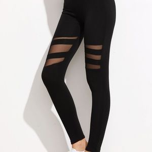 Super cute leggings with mesh cut out at thighs.Perfect for the gym, lounging around, or class! A wardrobe staple!