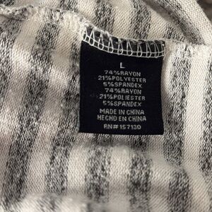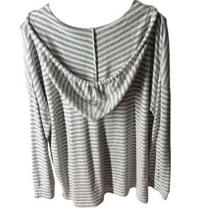 Oh so soft! Mesh + Lace long sleeve, gray and white stripe, V neck hoodie with cuff sleeves. Loose fitting, machine washable. Size large. Great pre-loved condition. Non smoking home.