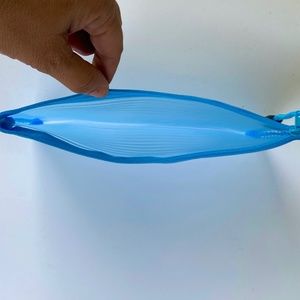 Mesh Light Blue Zip Pouch Bag With Colorful Stripes