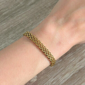 Mesh Link Chain Bracelet 6mm Stainless Steel Gold Modern Jewelry Gift