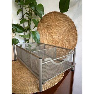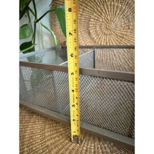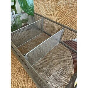 Sturdy silver-tone mesh organizer perfect for sorting papers, folders, or office supplies. Features three spacious compartments and a curved front for easy access. Great for home or office use!