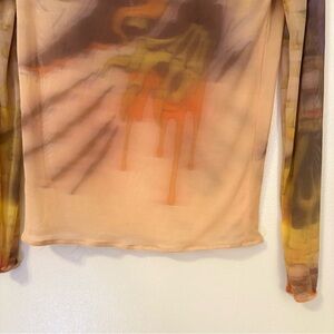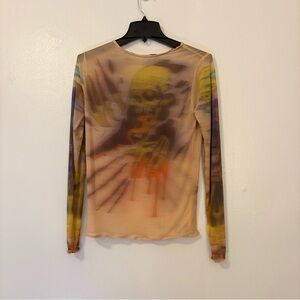 Mesh Orange and Yellow Fitted Long Sleeve Blouse Vintage Y2K