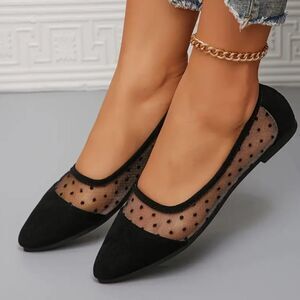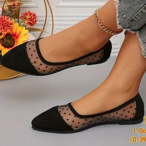 Mesh polka dot breathable slip on flats, Casual Point Toe, Slip On Flats, Lightweight & Comfortable Shoes.