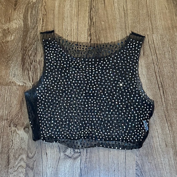 Tagged iHeartRaves for exposure. One of my friends cut the tags off so I can’t remember the brand or size, defs would fit a small/medium the best. Only worn a couple of times, perfect for raves, concerts, and going out