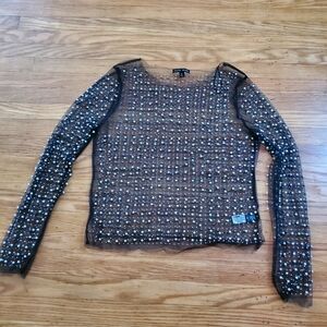 Elegant sheer black top adorned with sparkling embellishments. Perfect for a night out or special occasion. never used