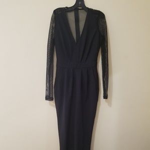 Runs a but small. Long sleeve mesh romper.