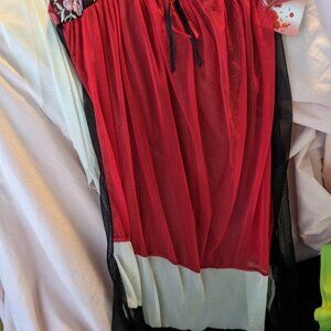 Mesh Sexy Nightgown W;/G String Panties Size XL Red & Black See Through New W/T