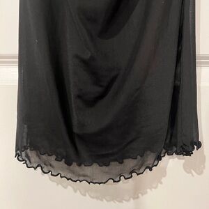 First two photos are similar to actual dress actual dress has slip under layer and a mesh top layer with lettuce hem and rushed sides. Very comfortable and flattering! In like new condition.