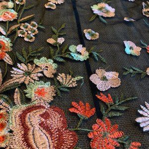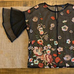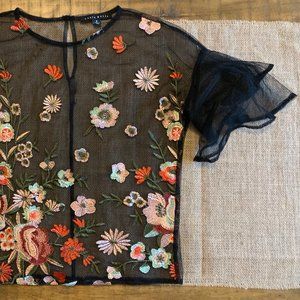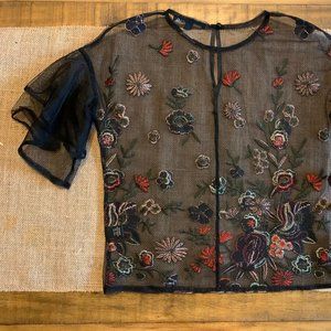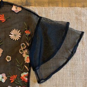 Black, Mesh, Flower-Embroidered Shirt