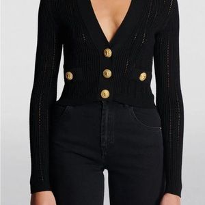 Neck Cardigan - Black - Cardigans Wrap yourself in timeless sophistication with this luxurious v-neck cardigan with shoulder pads. . High quality cardigan that exudes classic elegance that will elevate your wardrobe for seasons to come. The engraved buttons on add a touch of modern chic to this timeless piece.
