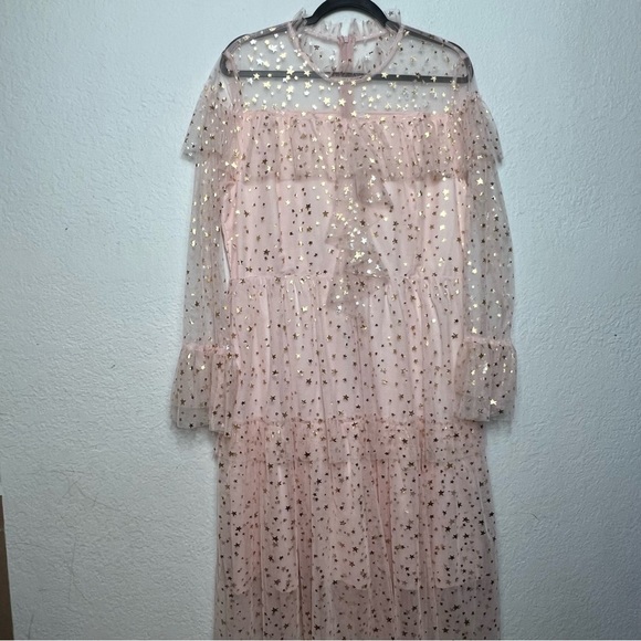 Mesh Star Long Sleeve Overlay Maxi Dress