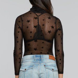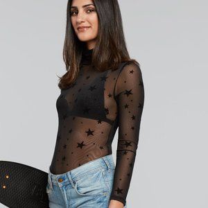 High neckline bodysuit. Subtle stars on mesh fabric.