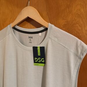 This is new with tags. The fabric is 100 % polyester and is lightweight mesh. The chest is 50 inches, 25 flat. The length is 31 inches. The color is light green.
