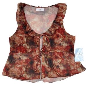 Mesh Tie Front Rose Print Tank Top by Rebellious Dreamer - Size L