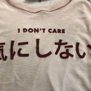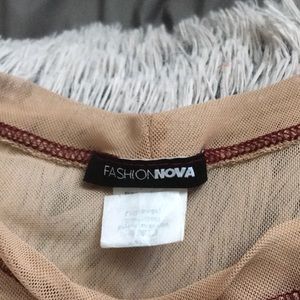 Mesh crop top, bought it but never wore it. Has a stain that can be washed right out, red threading