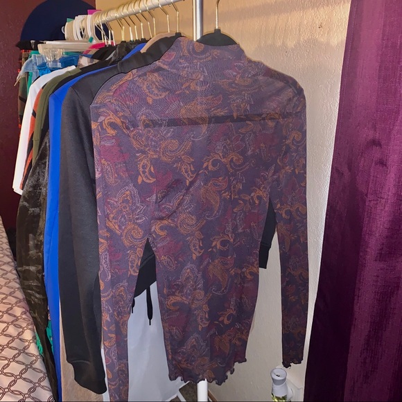 Paisley print mesh top from nordstrom rack, perfect for fall or dress up with gold jewelry and some print on print action + a pair of mules for a spring summer look.
