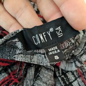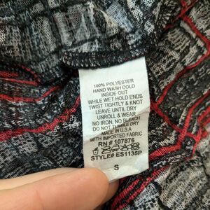 Mesh Top S Red Black Y2K Vintage Whimsigoth Comfy Loose Sheer Plaid Sleeve