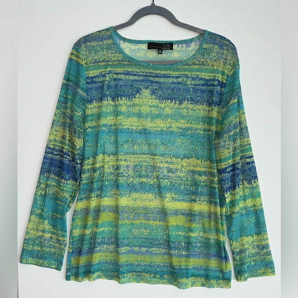 Light and airy mesh top. The tee is a beautiful layering piece over a tank. L (49" Bust, 23" Length). 100% Polyester. Hand Wash Cold / Do Not Bleach / Tumble Dry Low / Cool Iron