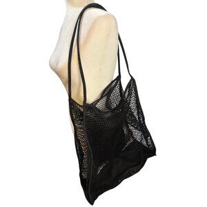 This mesh tote bag offers a lightweight and breathable design, making it practical for carrying essentials. The outer pocket adds convenience for easy access.